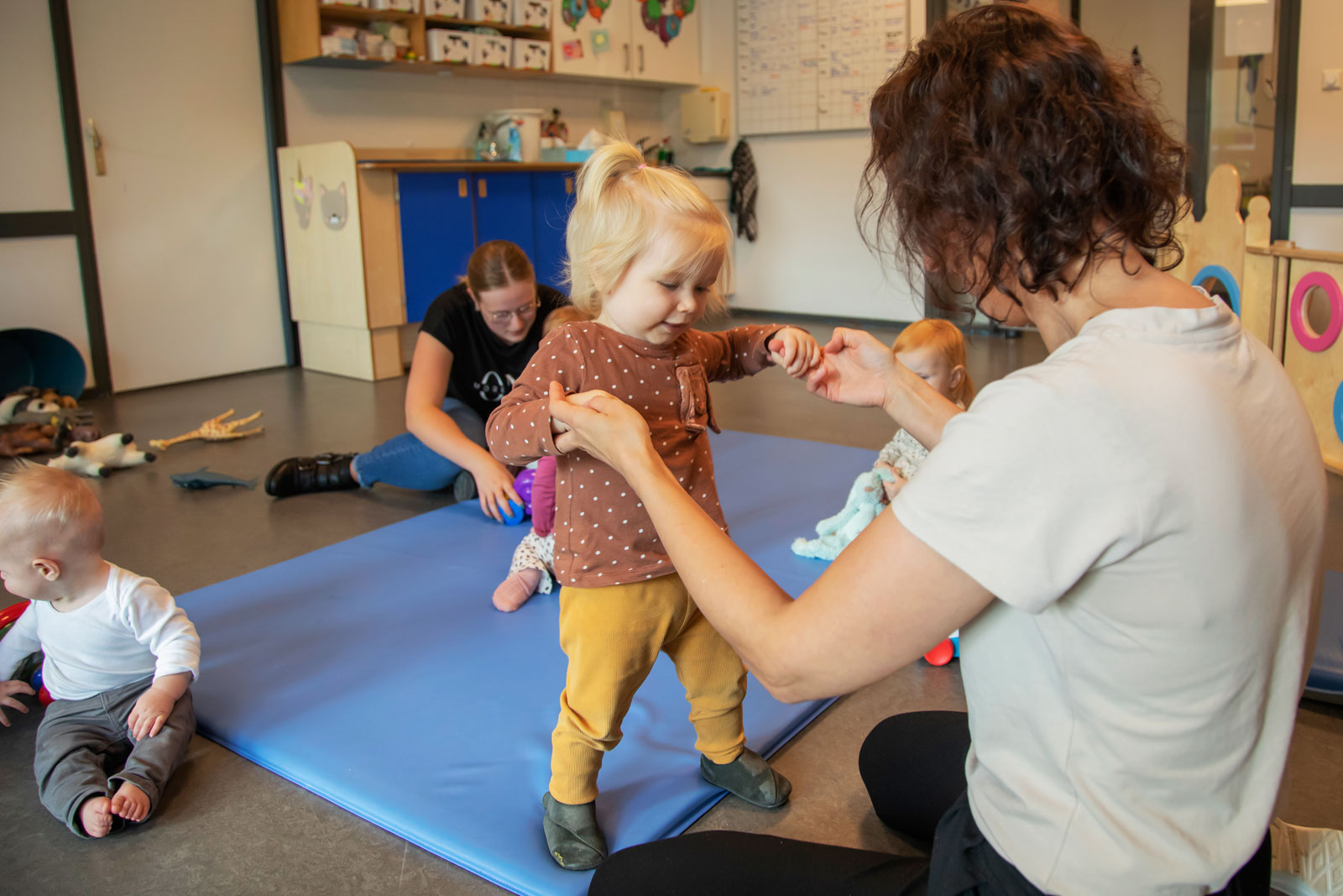 Een veilige sfeer vinden we belangrijk. Daarom werken we met vaste gezichten, duidelijke afspraken en een rustige, positieve begeleiding. Onze pedagogisch porfessionals zijn betrokken en dichtbij: ze helpen kinderen om zelfstandig te worden, samen te spelen en zich prettig te voelen in de groep — zodat ieder kind zich welkom en gezien voelt.